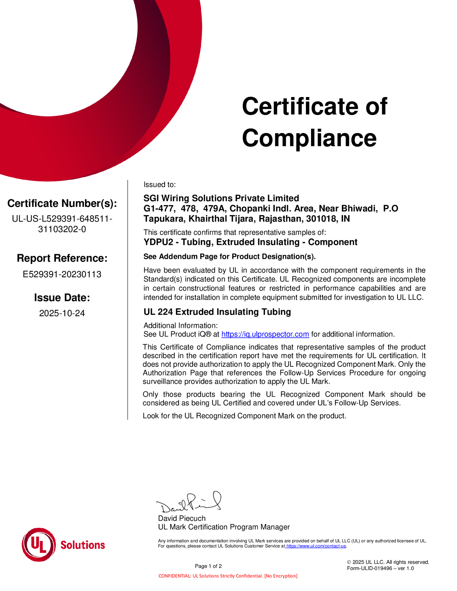 At SGI Wiring Solutions, we follow a strategy of product differentiation, consistently delivering high-quality products on time at competitive prices, ensuring excellence, reliability, and long-term customer satisfaction.